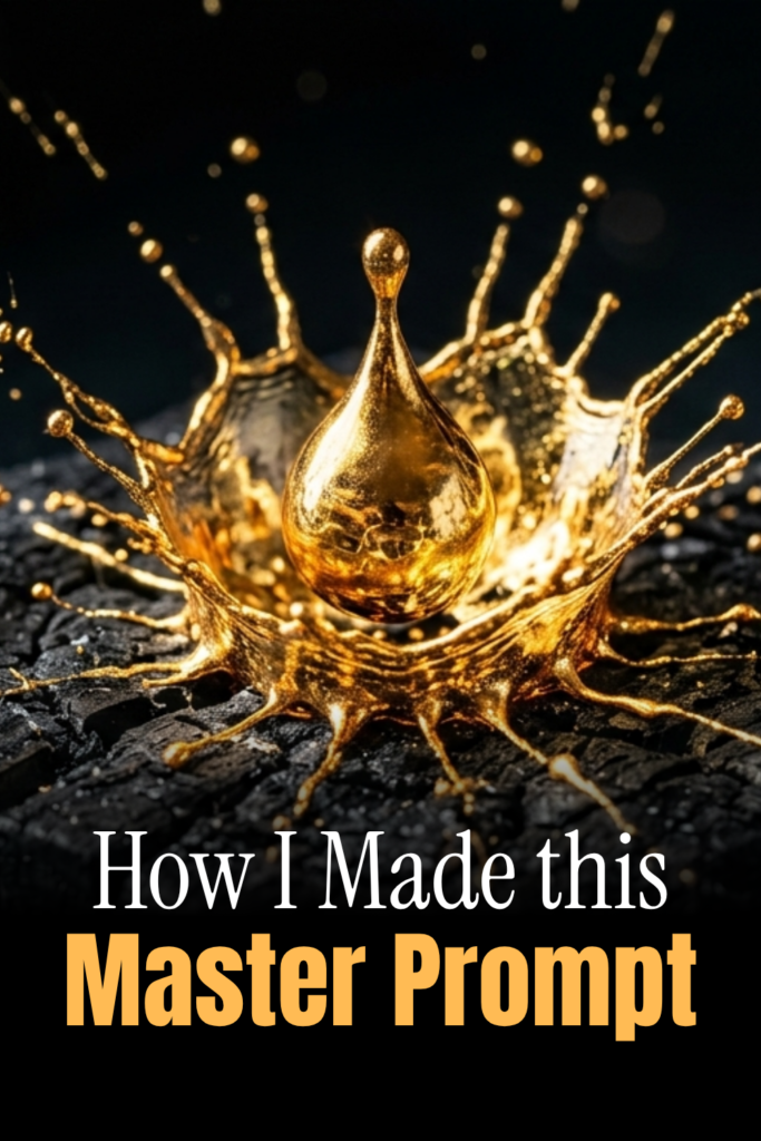 One of the most sought-after aesthetics in digital art is the “liquid gold” effect—the perfect blend of luxury and fluid dynamics. Today, I’m breaking down exactly how I created this stunning image of a gold splash on charred charcoal, and how you can use the same “Master Prompt” logic for your own projects.